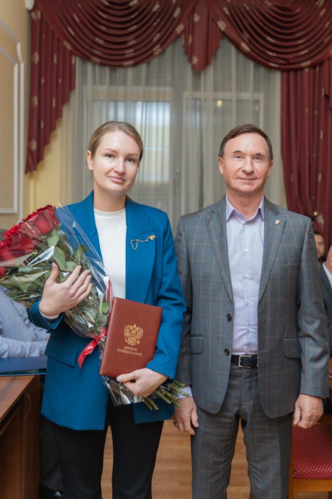 Президент Алексей Николаевич Царьков вручил диплом кандидата технических наук Марии Михайловне Авдеевой.